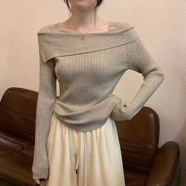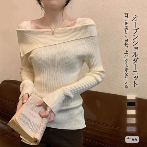 オープンショルダー 肌見せ トップス プルオーバー ニット